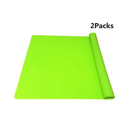 2Pack Multipurpose Soft Silicone Baking Mat With Waterproof Measurements Non Stick Non Slip Pastry Rolling Mat (15.8"by11.8") (Green)