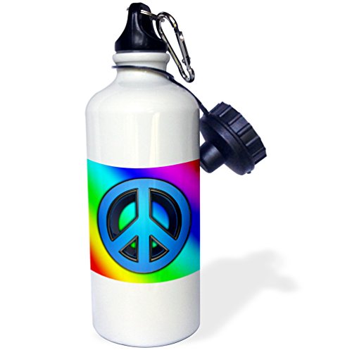 3dRose wb_155150_1 Peace Sign Over Rainbow Background Love Sports Water Bottle, 21 oz, White