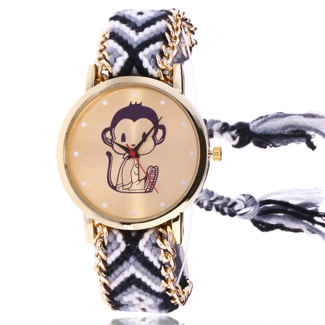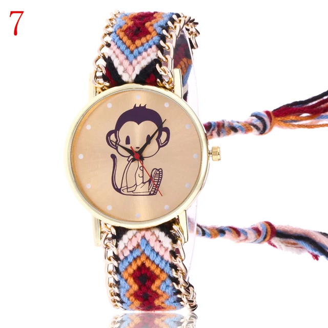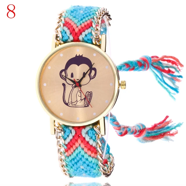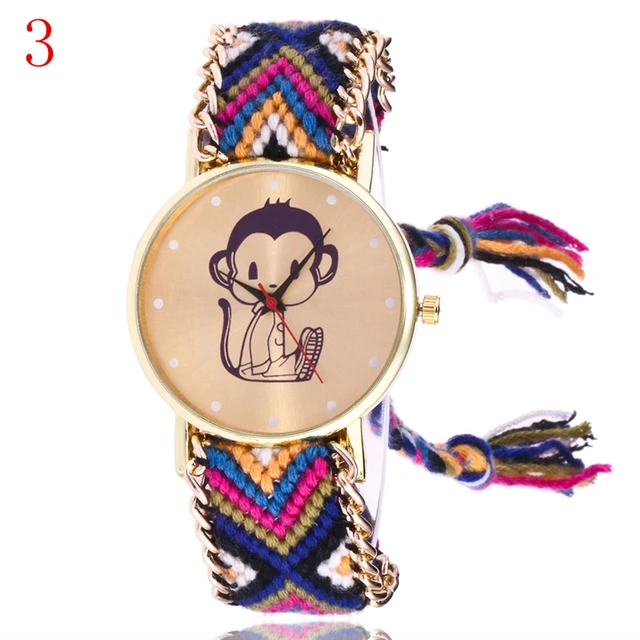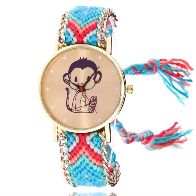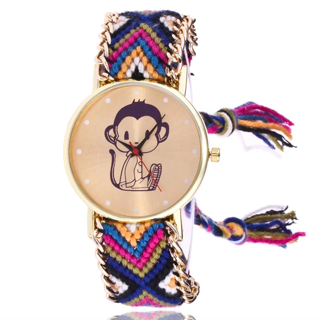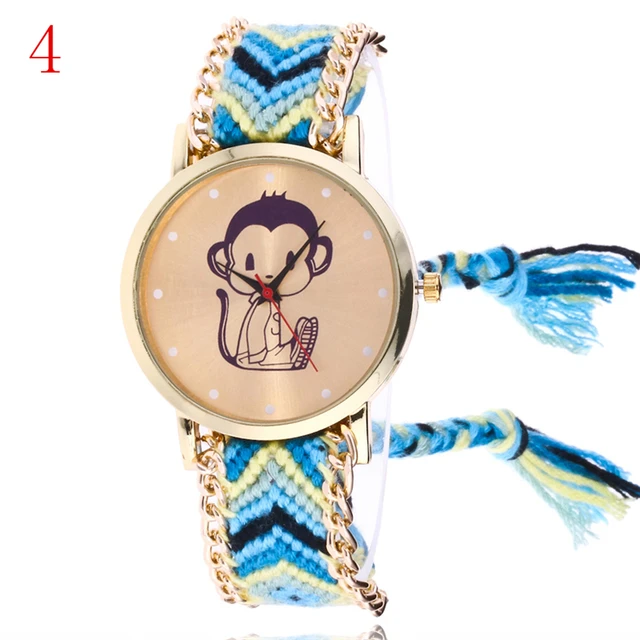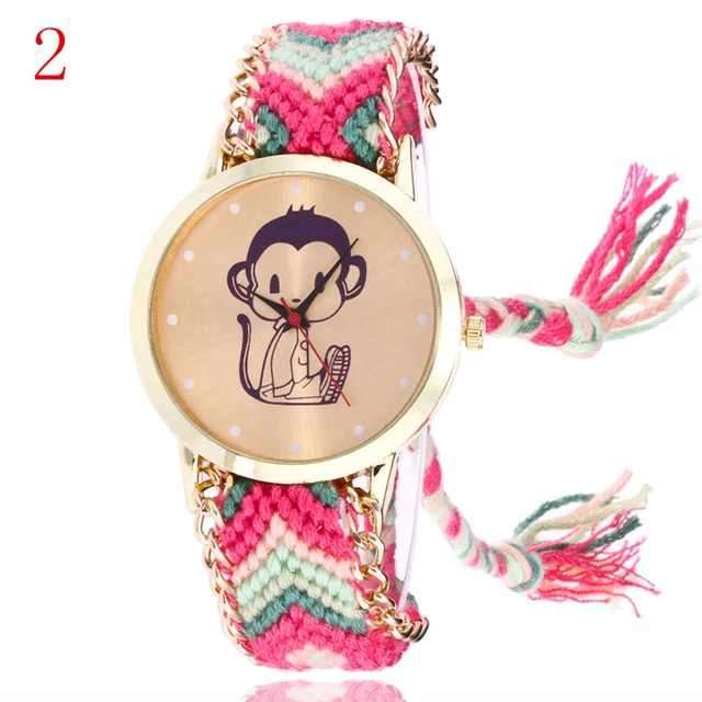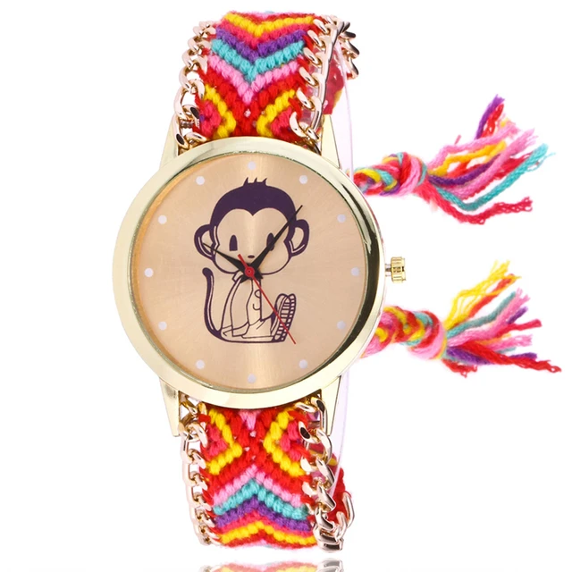 | [해외] 여자 패션 컬러 팔찌 시계 여성 JQUEEN 캐주얼 석영 시계 Montre 울 밴드 원숭이 시계 선물 Reloj Mujer |