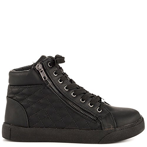 - Feature : Mid-top lace-up fashion sneaker with quilted side panels and silver-tone side zipper at outstep / Subtle instep zipper / Metallic lace accent