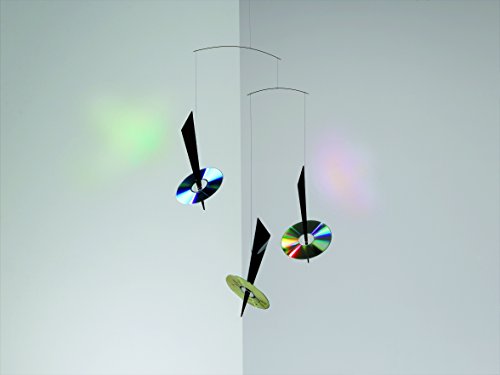 - A modern and truly "interactive" design, which makes an eye-catching mobile. The mobile will reflect moving spots of light on your walls and ceiling, creating magic in the room, with movement and colours accross the spectrum. The triangels are in acrylic. (CD's are not included)