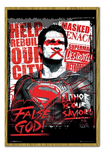 -. Title : Batman V Superman - Superman False God Poster Magnetic Notice Board Oak Framed - 96.5 x 66 cms (Approx 38 x 26 inches)