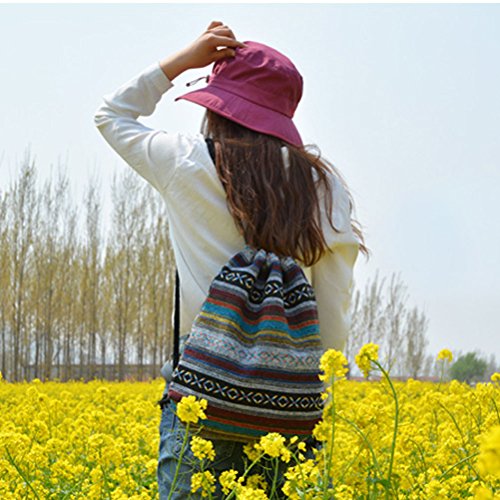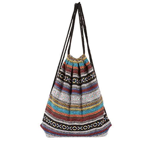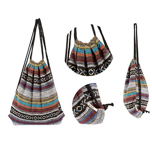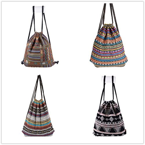 -. Title : Yiuswoy Bohemian Fabric Drawstring Bag Geometric Pattern Backpack - Model A
