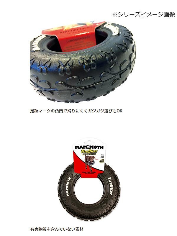 | ナイロンファイバーが織り込まれた天然ゴム製のタイヤ型トイ。表面には足跡マークの凸凹がたくさんついているのでガジガジ好きのワンちゃんにもおすすめ!!重みがあるため転がして遊ぶのにも最適です♪ |