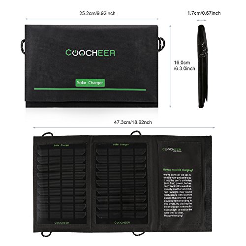 Coocheer iSmart Technology Solar Phone Charging Panel, Portable Foldable 7W Solar USB Charger for iPhone, iPad, Android,Tablets, Camera, Speaker