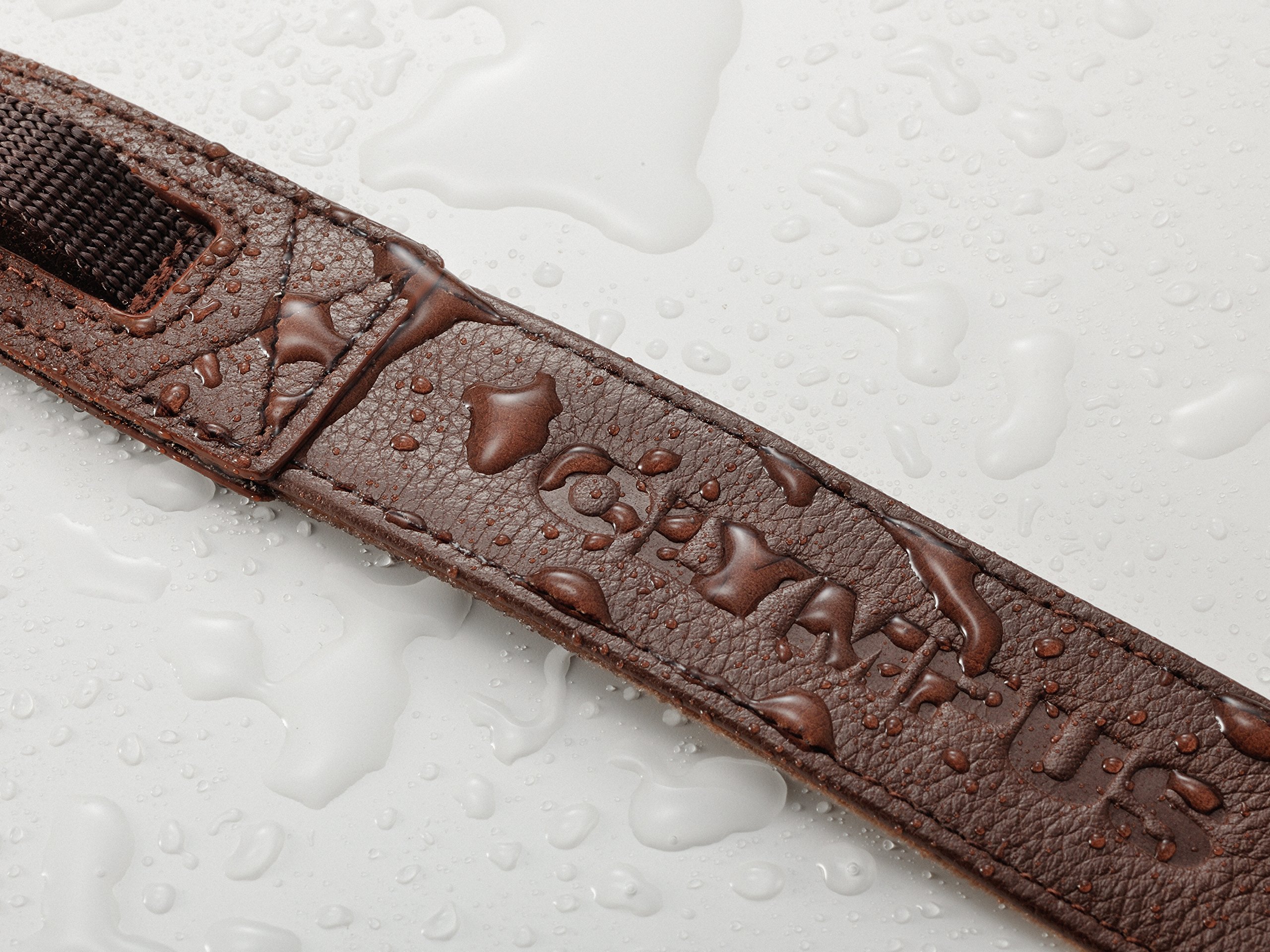 Camera strap drifting luxurious feeling of real leather material which was water repellent finish.