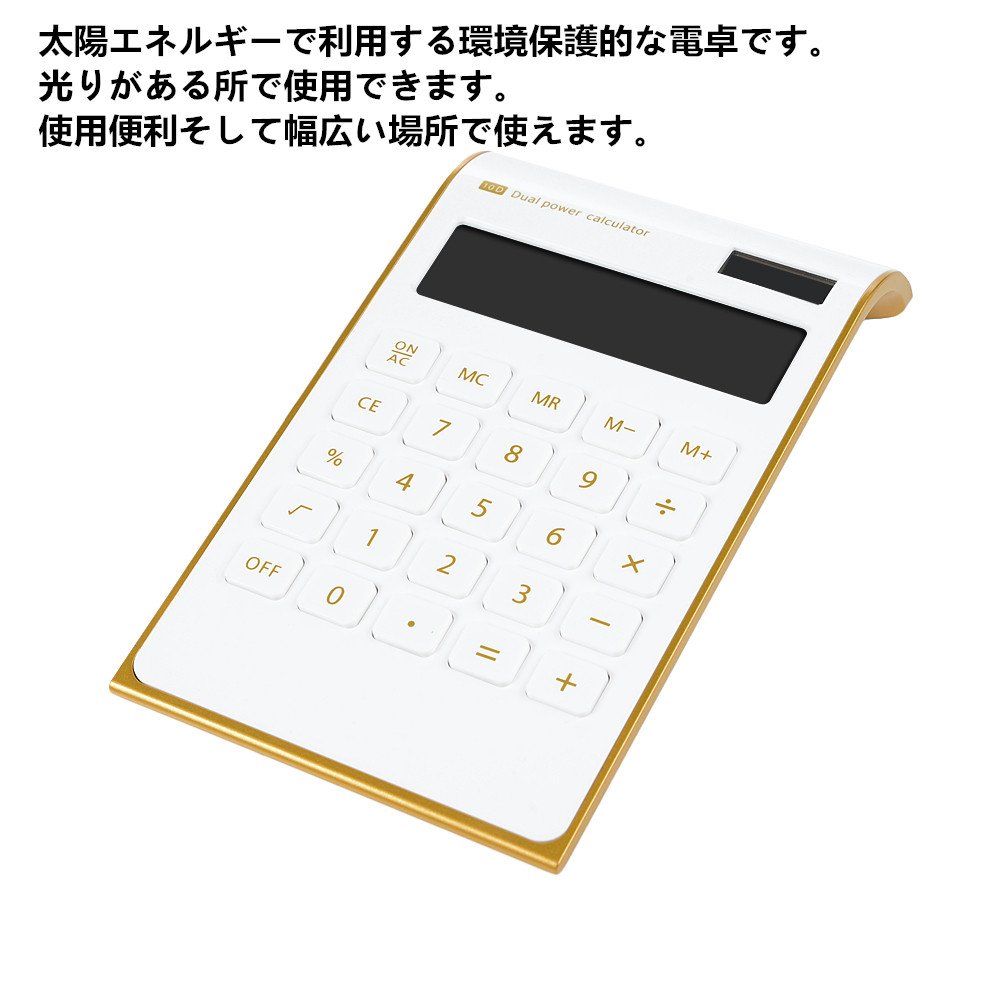 太陽エネルギーで利用する環境保護的な電卓です。光りがある所で使用できます。使用便利そして幅広い場所で使えます。