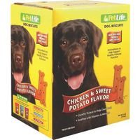 -. Feature : Made with real chicken and sweet potato. Fortified with vitamins and minerals. Antioxidants to help support a healthy immune function. Crunch texture to help clean teeth. / DOG TREATS / Size Lbs=4 / PET LIFE / DOG BISCUITS