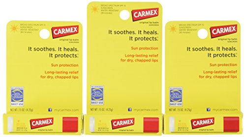 Carmex Lip Balm provides SPF 15 which is recommended for people who burn and tan minimally.