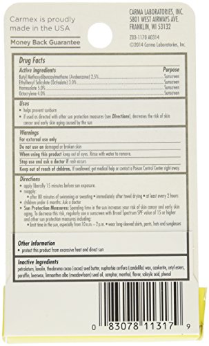 Carmex Lip Moisturizing Click-Stick contains SPF 15.