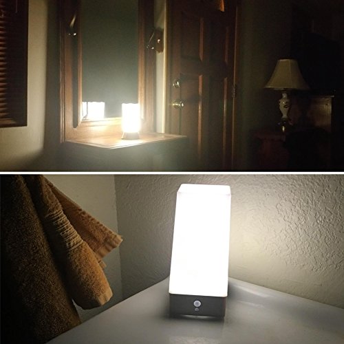 WRalwaysLX 3 Modes Battery Powered Small Table Lamp,Bedside Lamp Wireless PIR Motion Sensor LED Night Light,USE 3x1.5VAAA Battery,Sensitive Portable Moving Lamp for Kids Room, Hallway,Bedroom