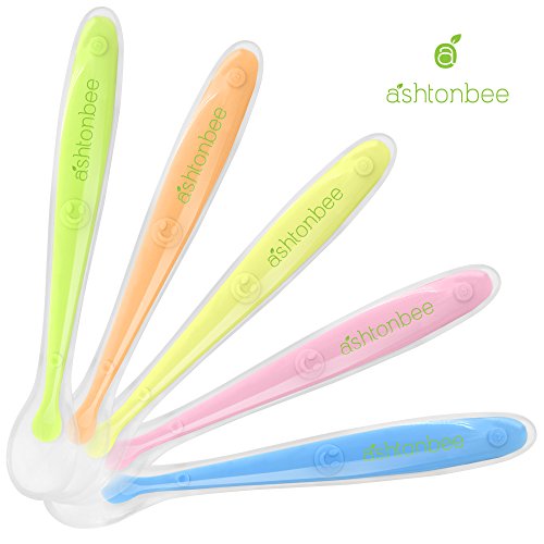 Baby Spoons BPA Free Soft Silicone Set for Feeding by Ashtonbee (5 Pack)