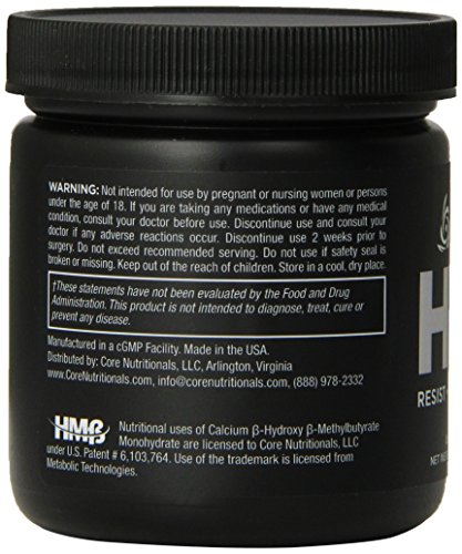 -. Binding : Health and Beauty -. Brand : Core Nutritionals -. EAN : 0850757001443 -. Feature : Helps reduce muscle damage during periods of strenuous exercise and reduce the rate of mucle protein breakdown / Increase the rate of skeletal protein synthesis through Leucine / Helps increase power output during explosive movements / Perfect for those looking to build and maintain muscle mass / Made with High Quality and effective ingredients -. IsAdultProduct : 0 -. Label : Core Nutritionals -. Manufacturer : Core Nutritionals -. NumberOfItems : 1 -. PackageQuantity : 1 -. ProductGroup : Health and Beauty -. ProductTypeName : HEALTH_PERSONAL_CARE -. PublicationDate : 2014-06-17 -. Publisher : Core Nutritionals -. ReleaseDate : 2014-06-14 -. Studio : Core Nutritionals -. Title : Core Nutritionals Hmb Dietary Supplement, 90 Gram -. UPC : 850757001443