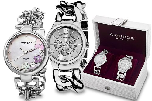 -. Title : Akribos XXIV Silver Tone Ladies Watch Set AK677SS