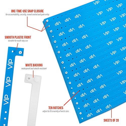 -. Feature : Comfortable & Light Weight / Secure, one time use, locking plastic snaps / Waterproof / Excellent for extended wear / 500 Wristbands in Sheets of 20.