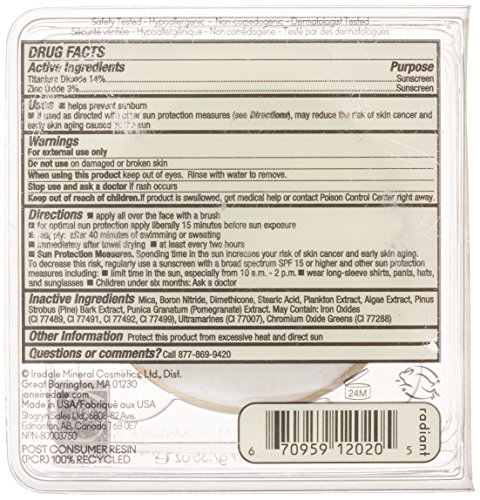 Studio : jane iredale Publisher : jane iredale Binding : Health and Beauty Product Description A pressed mineral foundation that is slightly more sheer and matte than the loose powders. Made from micronized minerals, free of synthetic chemicals, oil free and weightless. Water resistant to 40 minutes. A foundation, powder, concealer and broad spectrum sunscreen with SPF 20 UVB/UVA. Contains antioxidants such as Pine Bark Extract and Pomegranate Extract (a potent antioxidant that aids in minimizing UV damage). Key ingredients: Titanium Dioxide, listed by the FDA as one of only two physical sunscreen actives, helps to calm inflammation, provides coverage and color; Zinc Oxide, listed by the FDA as one of only two physical sunscreen actives, helps to calm inflammation, provides bacterial protection; Pomegranate Extract protects, aids in minimizing UV damage. 0