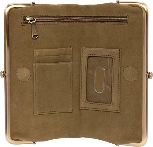 Seamlessly mixing style and function, this Lauren Vintage Leather Clutch Wallet by Hobo transitions perfectly from day to night! This fully lined clutch is made from top-grain suede for a funky, vintage look. The interior of this clutch contains 3 card slots, 1 clear ID window, and 1 roomy zippered pocket. One clasp compartment includes 2 bill compartments and 6 card slots. The other clasp compartment contains a zip pocket and space for a smartphone. The abundance of functionality compartments guarantees that you'll never be without your essentials! This accessory secures with a strong hidden magnet closure. Measures 8.5" x 4.5" x 1", folds out to 9.25" wide.Feature