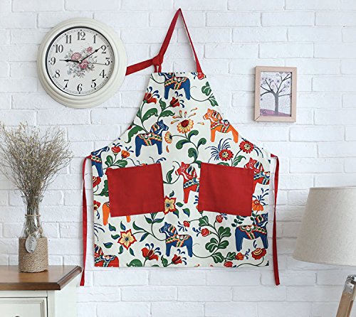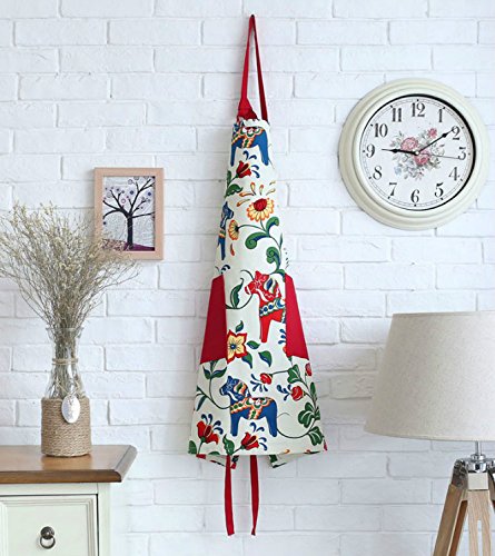 Great Gift for Mum Red Apron for Women with Pockets, Fashion Dala Horse Design