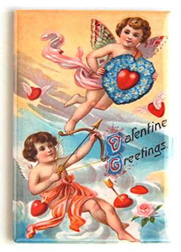 Valentine's Day Greetings "Cupid with Hearts" Fridge Magnet (2.5 x 3.5 inches)