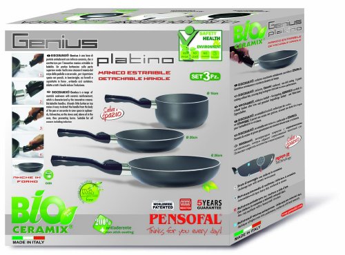 -. Title : Pensofal 07PEN9875 Genius Platino 3-Piece Cookware Set with Removable Handles, 2 Fry Pans and 1 Sauce Pan