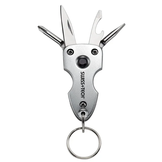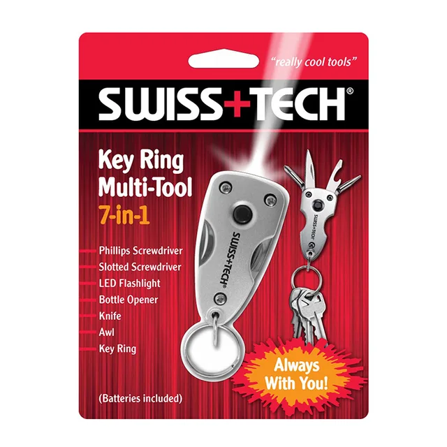 스위스 + 기술 포켓 7 1 키 링 멀티 도구 LED 손전등 드라이버 나이프 오프너 자동 안전 야외 캠핑
