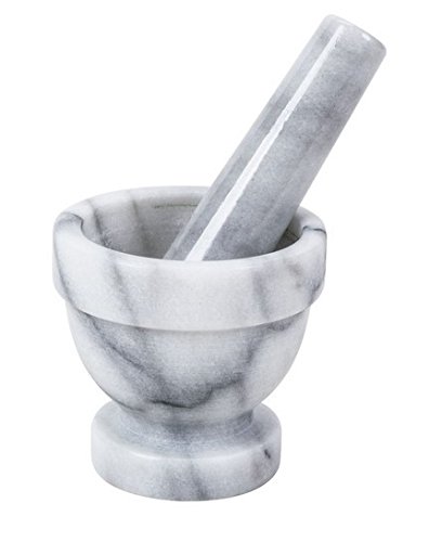 -. Feature : This is a wonderful tool to use to prepare dished where spice is a critical component, such as curries / The pestle is a heavy bat-shaped tool, whose end is used for pounding and grinding and the mortar is the bowl and both are made of marble / This bowl style marble grinder is also known as a mortar and pestle, and is a tool used to crush, grind and mix herbs and recipe ingredients / Excellent for bringing flavor out of seeds, nuts and spices / Originated from Taiwan