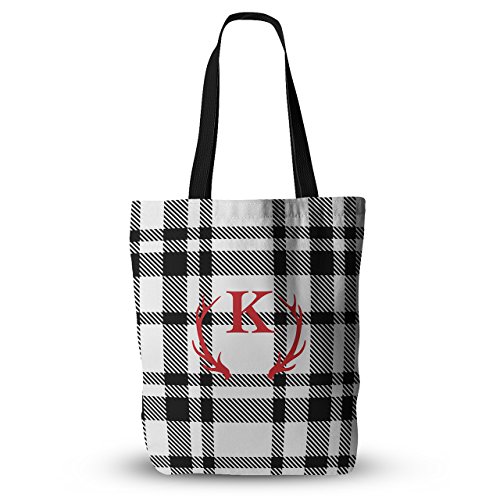 KESS InHouse Original "White Plaid Monogram" Everything Tote Bag, 18" x 18", Multicolor