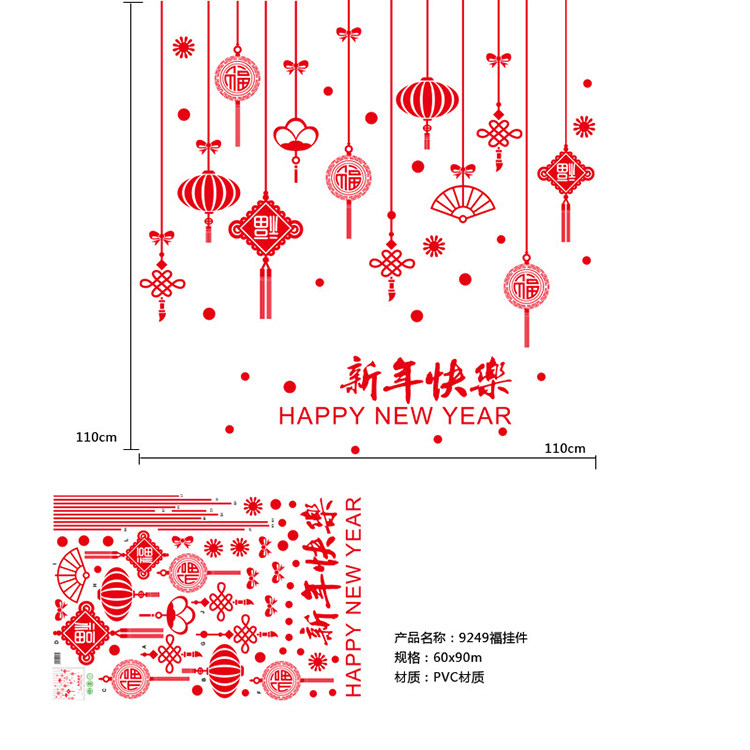 B. New Year festive decorating red fire small lantern living room bedroom restaurant glass paste chicken Year Spring Wall stickers