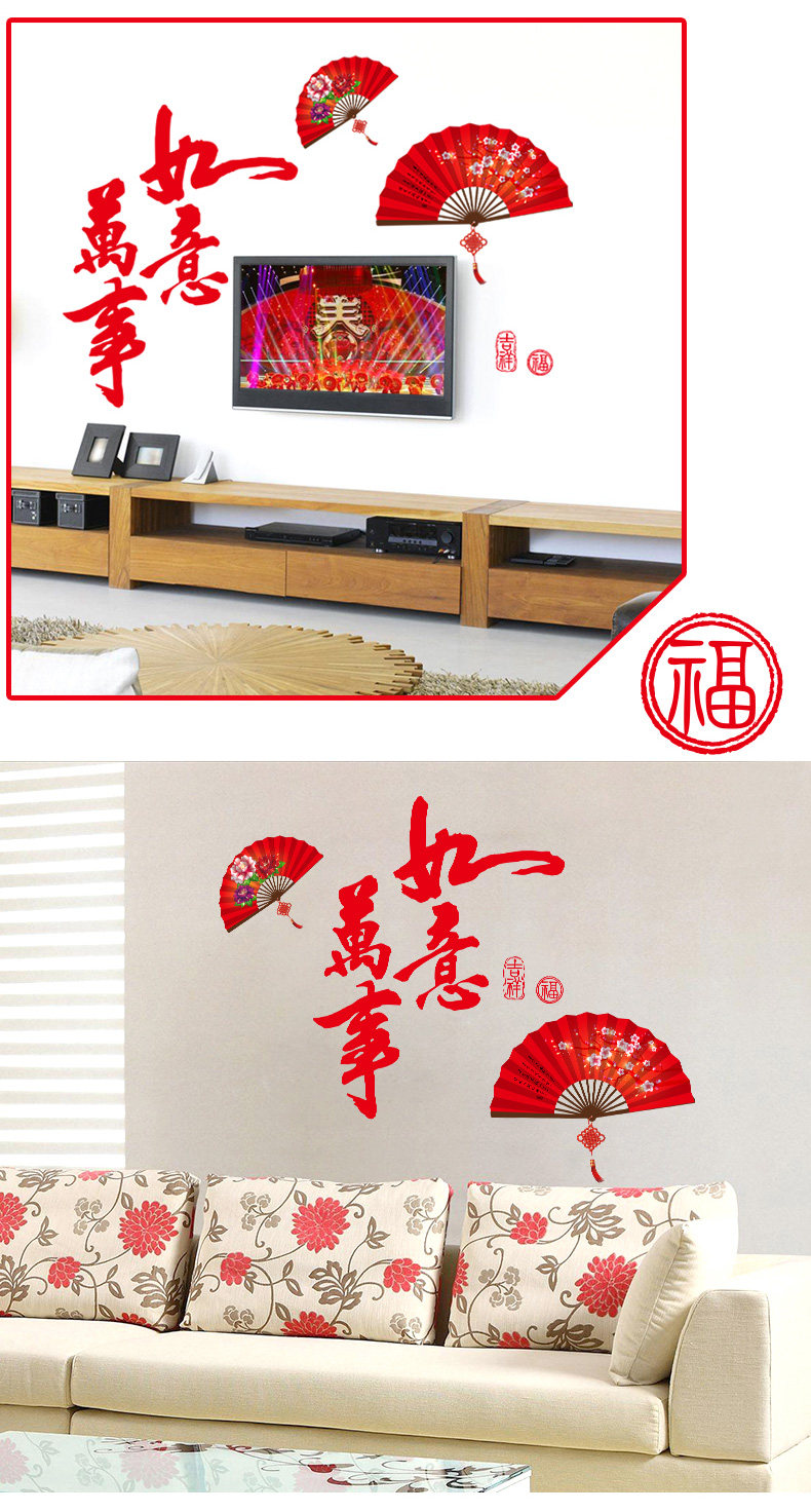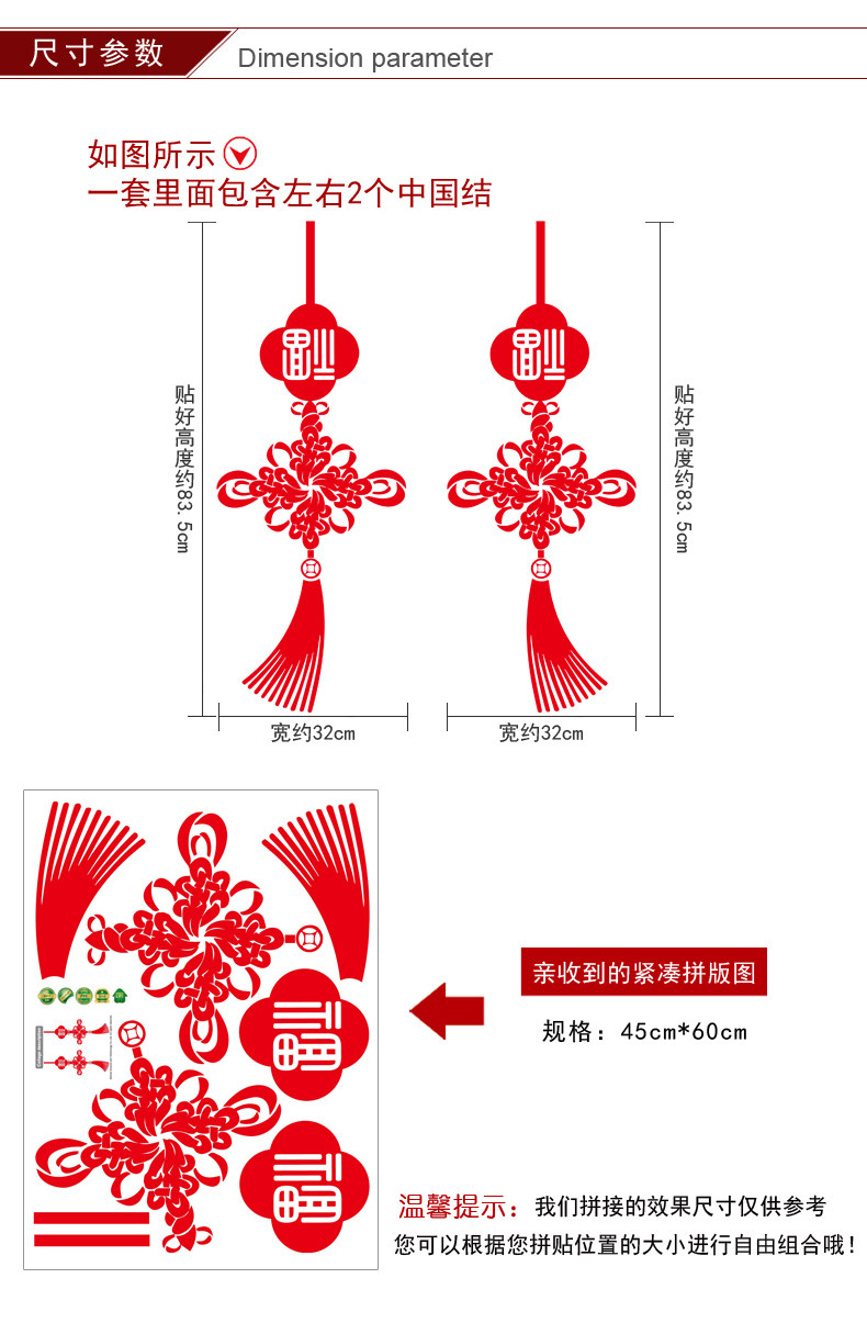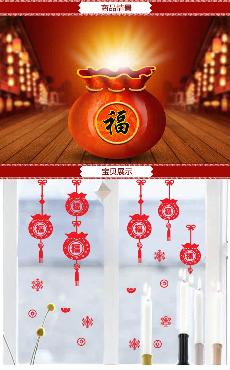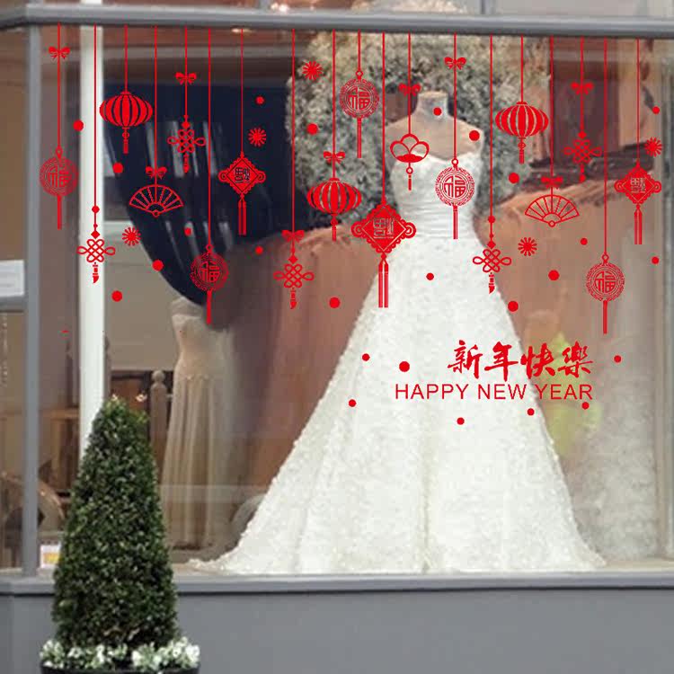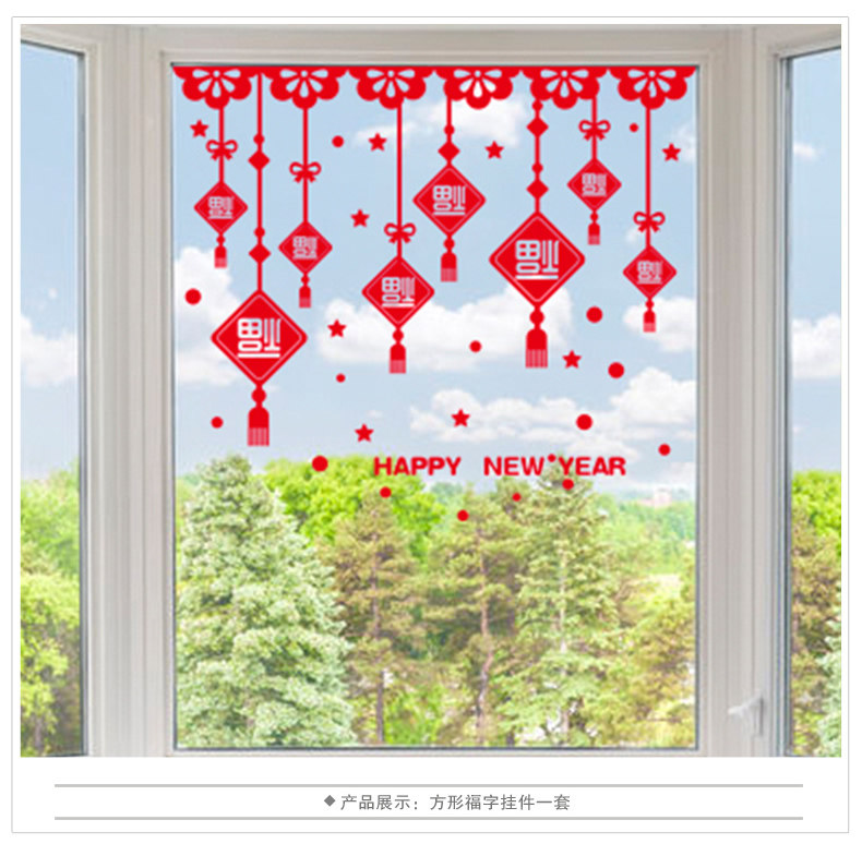 F.2017 Spring Festival festive decorations bedroom living room glass window wall stickers removable mall doors and windows stickers double-sided