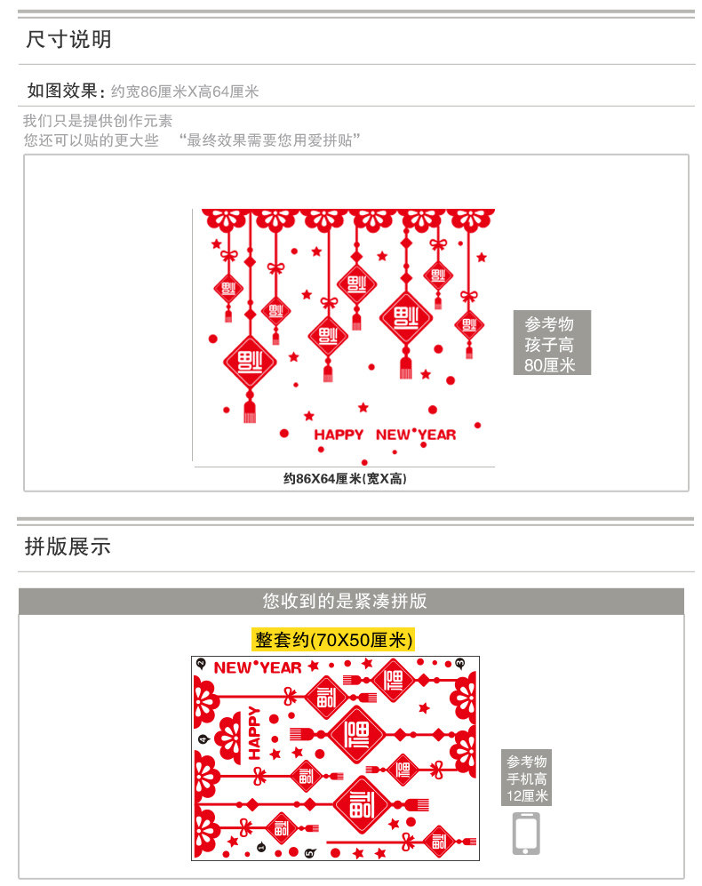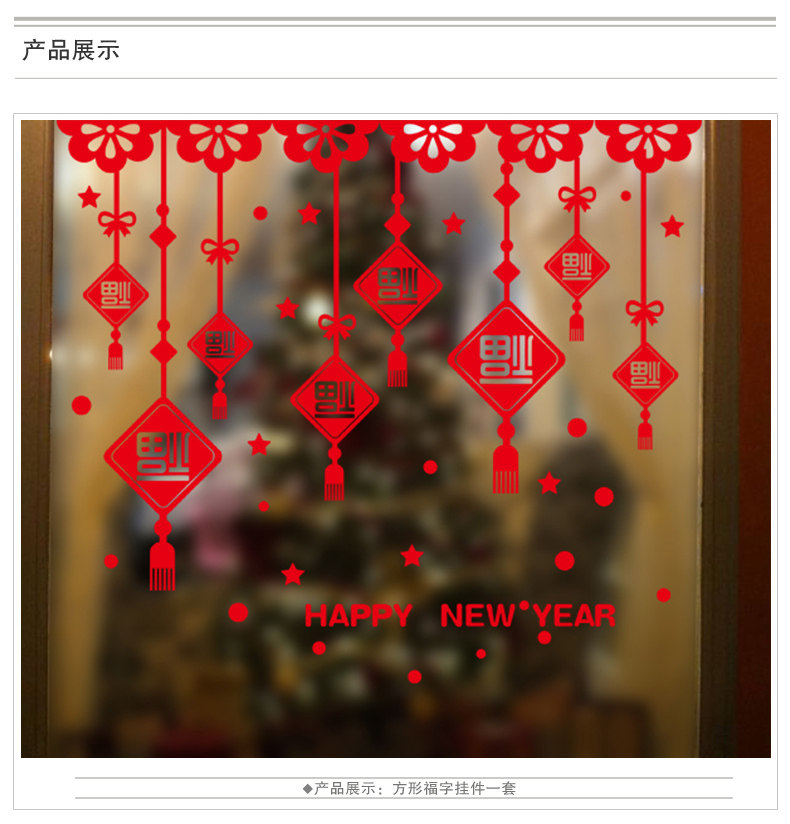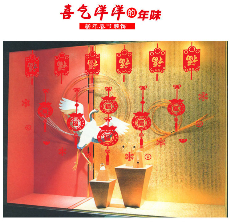 E.New Year 's Day Decorative Wall Stickers New Year firecrackers mall shop window windows glass door stickers New Year wall stickers