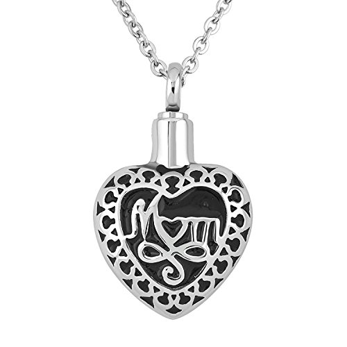 Heart Love Mom Cremation Necklace URNs For Ashes Memorial Keepsake Pendant Stainless Steel Funnel