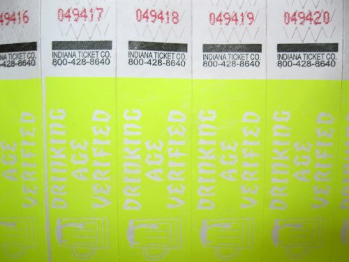 -. Binding : Office Product -. Brand : Tyvek -. Feature : 500 Yellow Drinking Age Verified Consecutively Numbered / Tyvek Wristbands 3/4 Inch / waterproof, durable, great one time use -. Label : School House Cards -. Manufacturer : School House Cards -. Model : 500 Yellow Drinking Age Verified -. MPN : GG-BCIG-FK0T -. PackageQuantity : 1 -. PartNumber : GG-BCIG-FK0T -. ProductGroup : Office Product -. ProductTypeName : OFFICE_PRODUCTS -. Publisher : School House Cards -. Studio : School House Cards -. Title : 500 Neon Yellow Drinking Age Verified Consecutively Numbered Tyvek Wristbands 3/4 Inch