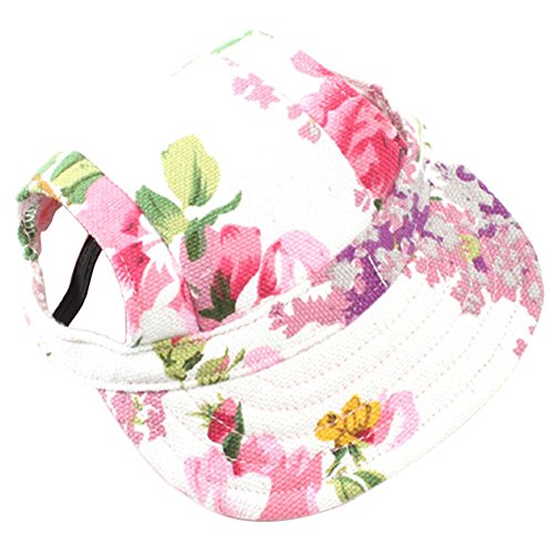 -. Title : BUYITNOW Pet Sun Hat with Ear Holes Small Dog Flower Baseball Cap, Size S