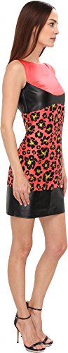 Mini dress with allover animal print and leather trim. Boat neckline. Sleeveless. Side-zip closure. Straight bottom hem hits above the knee. Primary: 100% silk.