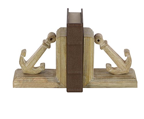 Deco 79 66177 Pair of Wooden Anchor Bookends, Brown