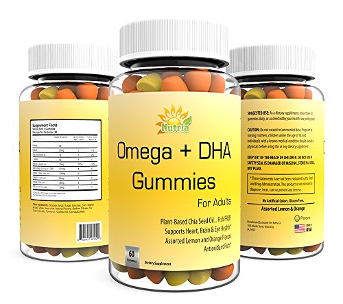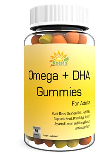 Best Omega 3-6-9 & DHA Gummies By Nutria-Super Potency Dietary Supplement For Adults- (550mg) Fish Free, Plant Based Chia Seed Oil-60 Count Heart, Brain,...