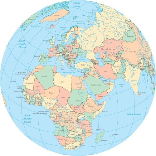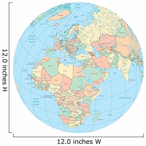 World Political Map Globe - Africa - 12"H x 12"W - Peel and Stick Wall Decal by Wallmonkeys