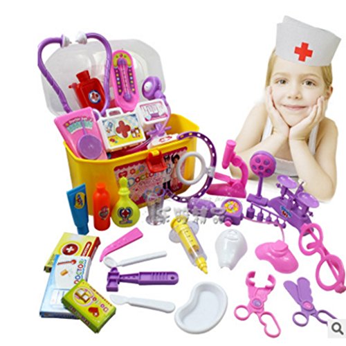 -. Feature : Material: ABS, will not do harm to the child, and will not be broken easily! Box Size: 23x14x15cm/9.06"x5.51"x5.91" / Fun doctor set featuring 30 different sturdy plastic medical tools including stethoscope, forceps, thermometer, microscope and much more. / Role play helps children overcome the fear of seeing a doctor,while developing early language and social skills. / Bright and Colorful Color can attract kid's attention and the color matching can effectively improve the child's color cognitive ability. / Great Gift - for any occasion, Christmas, Birthdays, special occasions and more! This is an especially nice gift for any child who has to visit the doctor often or receive any type of medical treatment on a regular basis more than regular checkups.Easy to Carry.