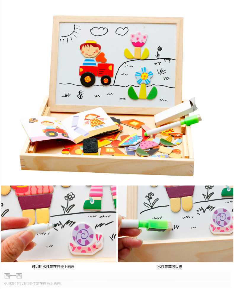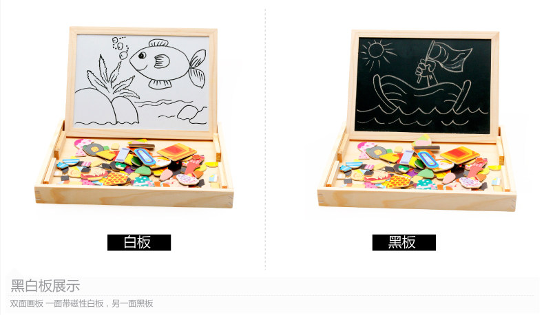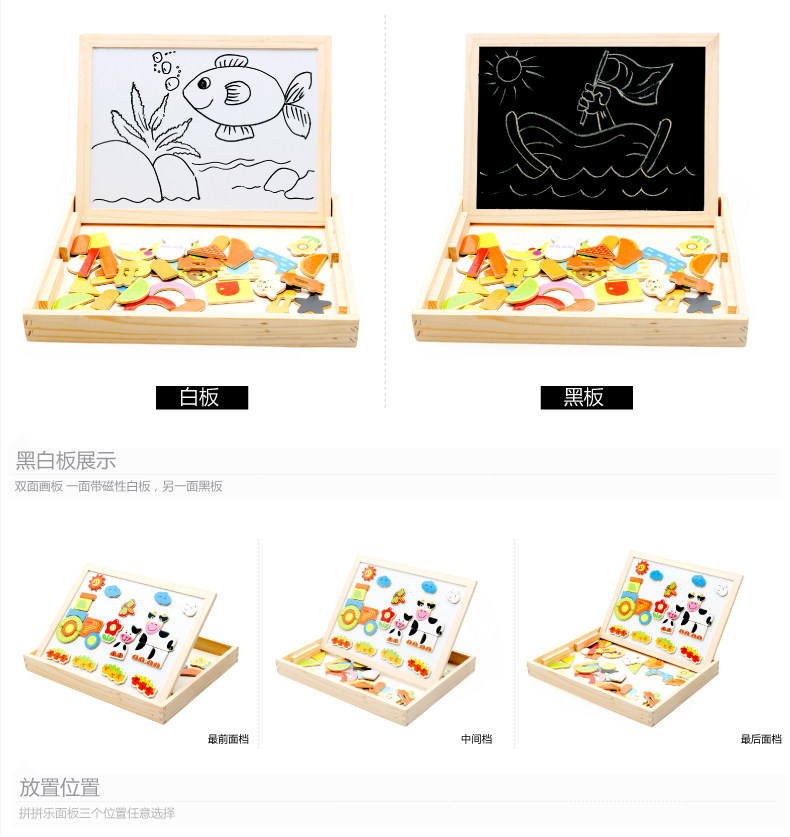 拼拼乐双面儿童学习磁性画板画架 多功能宝宝拼图写字黑板