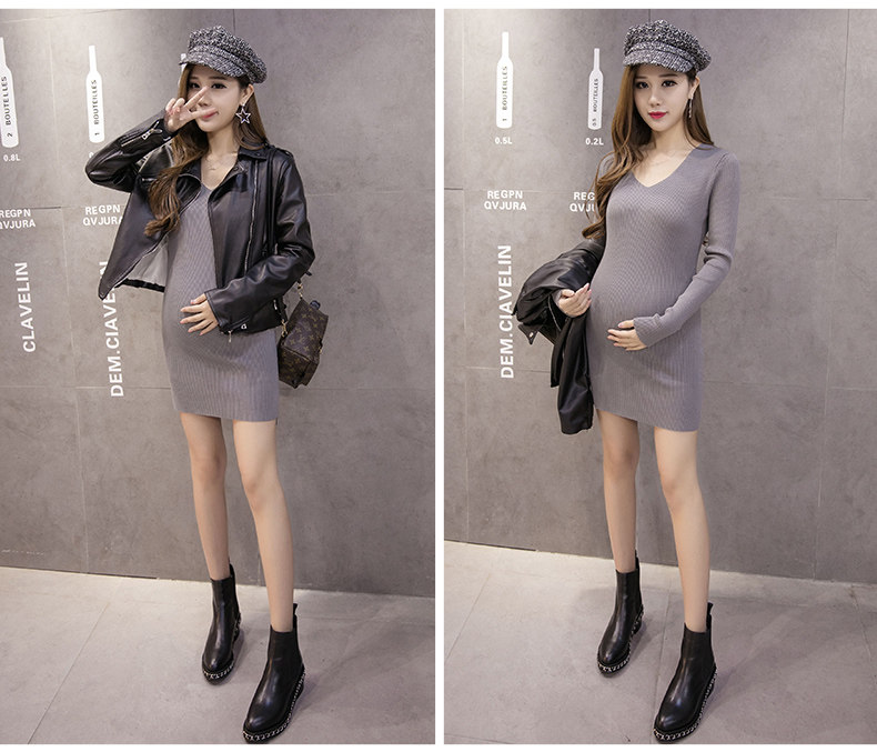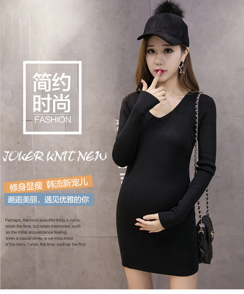 孕妇装冬装上衣加厚潮妈连衣裙孕妇毛衣孕妇打底衫秋冬长款针织衫