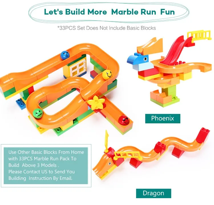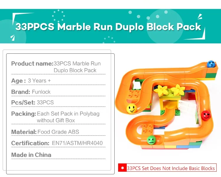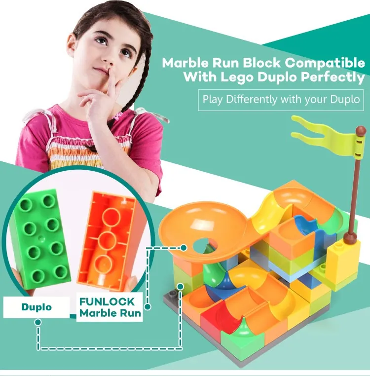 Funlock Duplo 33 pcs Marble Run Funny Plastic Slide Toys Blocks Creative Building Set Educational Gift for Children Kids