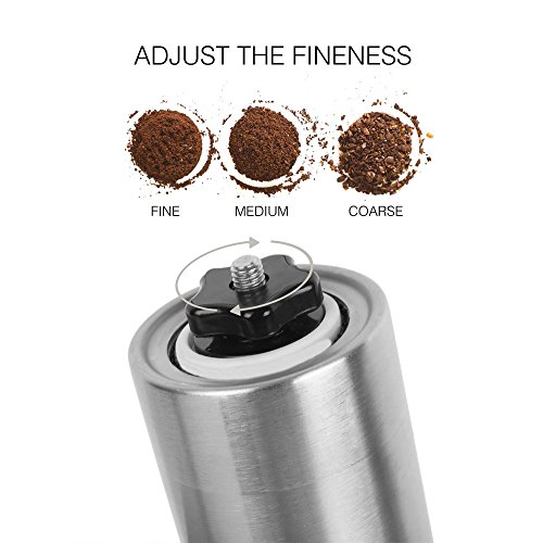 Perfect For Travelers :Hand grinders are small and easy to carry with that you can enjoy your favorite specialty coffee no matter where you are.When not in use, you can store the grinder without the handle.Designed to fit perfectly in your backpack or camping gear .