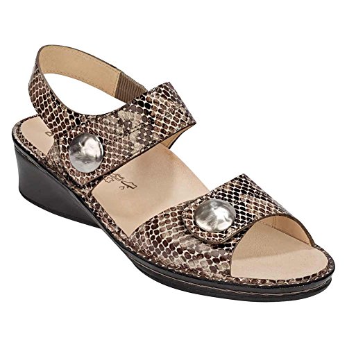Studio : Finn Comfort Publisher : Finn Comfort Binding : Shoes Product Description Fashion, comfort, and durability team up in the Finn Comfort Mira 82582. This women's sandal is made from premium leather and has a hook-and-loop closure for a custom fit. This Finn Comfort sandal also has a detachable, leather wrapped cork footbed that adjusts according to the natural foot shape to provide exceptional comfort. This sandal sits atop of a polyurethane wedge sole that delivers grip and stability to maintain a confident stride. Stylize your look with the Finn Comfort Mira 82582. 0