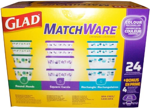 Store your food and stay organized with Glad MatchWare Variety Pack of Containers and lids. The green lids match the designer circle pattern on the containers. The blue lids match the designer rectangle pattern on the containers. The purple lids match the designer square pattern on the containers. Lids fit both size containers (16 ounce and 32 ounce) same color style and seal tightly to lock in freshness so your food stays fresher longer. Stay organized with interlocking lids of the same color.