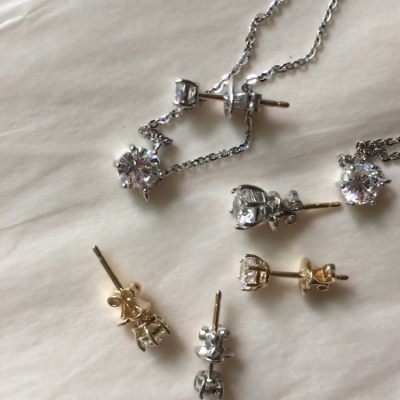 큐몬드 2부,3부,5부 목걸이/귀걸이 큐몬드 보증서 함께 배송됩니다. - 2부 약 3.8mm 3부 약 4.2mm 5부 약 5.2mm - 큐몬드는 다이아몬드의 컷팅을 재현한 합성석이다. 다이아몬드 기준으로 D~F 컬러, 내포물은 FL등급(Flawless), 컷팅은 Excellent로 깎아냈으며, 등급이 낮은 다이아몬드보다 광채나 컷팅에서 뛰어나고 목걸이 등에서 보석 여러 개를 함께 셋팅할 때 균질하게 표현할 수 있다. 경도는 8.5이며, 이는 다이아몬드의 경도 10보다 낮고 큐빅의 경도 6보다는 높다 큐몬드 제품도 오래 착용하면 광채를 잃게 되는 경우가 있는데, 이는 대부분 스크래치가 아닌 단백질과 지방이 표면에 달라붙는 경우이다. 이럴 때는 집에서 미지근한 물에 주방세제(중성세제)를 풀고 부드러운 칫솔로 거품을 내어 부드럽게 나석을 문질러주면 처음의 빛을 되찾을 수 있다. [네이버발췌] - 사실 다이아몬드 천연석만 보여드리는 저희몰에서 큐몬드제품을 선보이는게 싫었고 제 마음에 내키지 않았어요. 그런데 가까운 지인들 그리고 단골고객님들, 인친님들이 자꾸만 개별주문을 주시면서 자세히 접하게 되니 확실히 큐빅퀄리티랑은 다르고 다이아몬드 퀄리티가 나오더라구요! 이왕이면 최대한 좋은 퀄리티로 제작해 드리고자 다이아몬드 제작 공방에서만 작업하고, 난집또한 묵직하고 깔끔하게. 알 투과도를 높혀 훨씬 고급스럽고 반짝임을 돋보이게 하였어요. 그 결과 전체적으로 라인이 너무 만족스럽고, 이정도 가격에 이정도 퀄리티면 다이아몬드대용으로 정말 부담없이 만족이 크겠다! 생각했지요 :) 큐빅은 가벼워서 싫고, 다이아몬드는 너무 부담스럽다! 하시면 이제품 눈여겨 봐주세요✔ -
