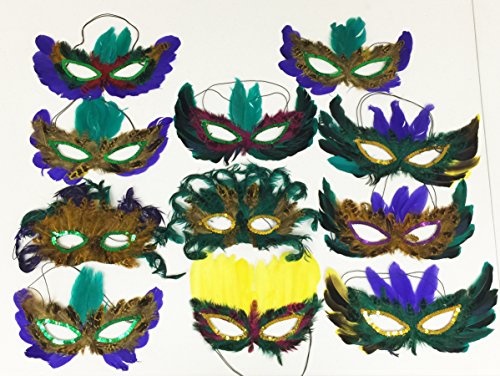 -. Feature : 50 Pc individual packed Mardi Gras feather masks / Perfect accessary for Mardi Gras party/Masquerade themed party/fat Tuesday/Wedding reception/Anniversary part/Musical Cinderella/photo booth accessory/costume mask / Size: big kids, teens and adults / Made of real feathers, each has an elastic band / Brand: GIFTEXPRESS