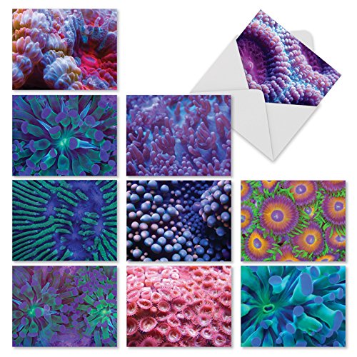 Dazzle someone with the hidden world of undersea life when you send them a note written on these All-Occasion Note Cards that present close up images of the colorful life below the surface of the ocean. For everyday correspondence, thank you notes or just "thinking of you" message, these cards are a more personal way to stay in touch. These notecards look great framed, too! Try framing them individually, or grouping several in a collage frame, to create visually appealing wall decor.