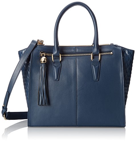 Zip-top leather bag featuring diamond-textured panels at sides, metallic logo plate on front, and tasseled zipper pull on back Dual top handles and removable shoulder strap Brand : Dolce Vita Item model num : Glazed Leather Satchel MPN(PartNumber) : BHFO EAN : 0765729164524 Product Dimensions(LxWxH) :