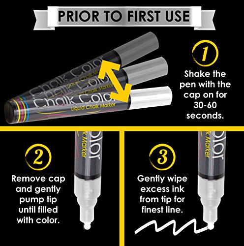 - ARTIST QUALITY – You deserve the highest quality chalk ink and the most durable fiber tips available. This is what you will get when you purchase our Pure White Liquid Chalk Marker today!