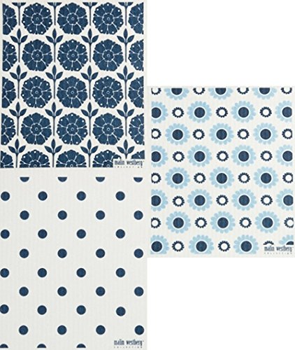 -. Feature : Contemporary Swedish Dish Cloth - Includes 3 coordinating designs / All natural materials: 70% Cellulose & 30% Cotton / Designed by Malin Westberg and Made in Sweden with water based inks / Reusable & 100 percent biodegradable; Approx. 6.75 x 8 inches / Absorbs an amazing 15 times its own weight in water